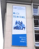 Das Wichtigste eines Unternehmens oder Produkts ist sicher nicht der Claim – aber das Wichtigste sollte im Claim stecken: Ein Claim fasst die Identität eines Unternehmens bzw. den Nutzen eines Produkts in wenigen Worten zusammen. Zwei Beispiele: Der für den Foto-Dienstleister fotopostonline.de entwickelte Produkt-Claim „Bilder so schön wie das Leben“ basiert auf dem Grundgedanken, dass Fotos die Erinnerung an schöne Momente des eigenen Lebens wach halten. Und was kann eine berufsbildende Schule den dort Lernenden im besten Falle bieten? Für die Freiburger Richard-Fehrenbach-Gewerbeschule entstand im Rahmen einer Postkartenaktion der Claim „Vielfalt. Spaß. Zukunft.“, der inzwischen auch auf einem Großtransparent an der Fassade des Schulgebäudes prangt (Gestaltung und Foto: Simone Deisler, atelier3w).
